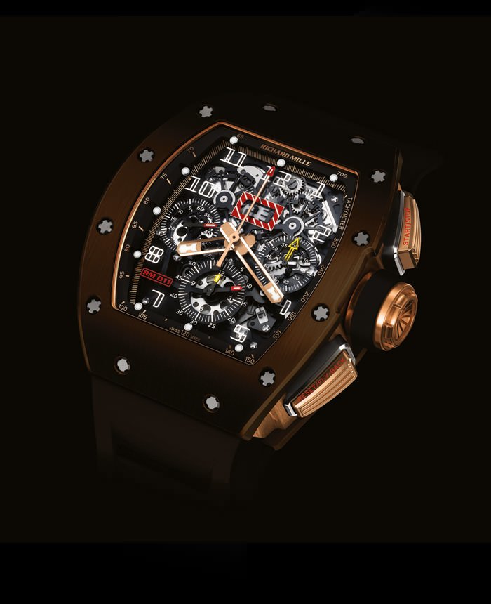 The latest reinterpretation of the brand’s RM 011 model presents a unique new colour thanks to the first use of brown silicon nitride in a watch case. Measuring 1,500 on the Vickers hardness scale, this material is resistant to wear, corrosion and temperature variations and is also very lightweight. It is used in the automobile industry to make components such as turbocharger rotors. This new material encases the RMAC1 self-winding tourbillon movement with flyback chronograph, 60-minute countdown function and annual calendar.