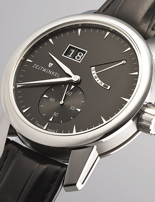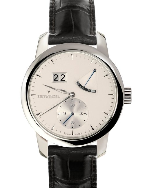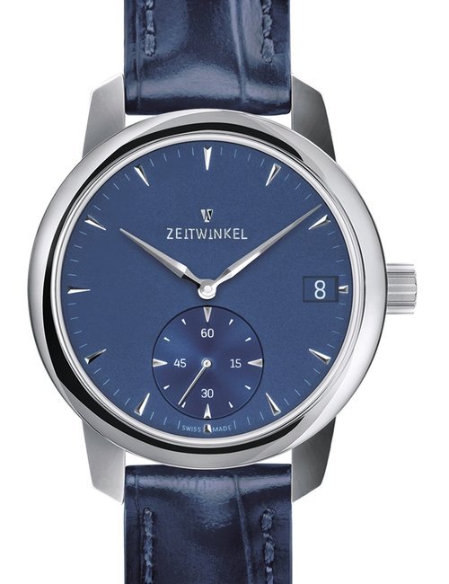 Count 188 degrees around the dial of Zeitwinkel’s latest offering and you will find yourself hovering appropriately over the “Swiss” in Swiss Made. Inside the 39mm stainless-steel case of the 188° beats the ZW0102 manufacture calibre, which offers 72 hours of power reserve. The arrangement of central hour and minute hands with offset small seconds at 6 o’clock offers excellent readability against the beautiful galvanic blue background of the dial, which is complemented by a blue calfskin leather strap.