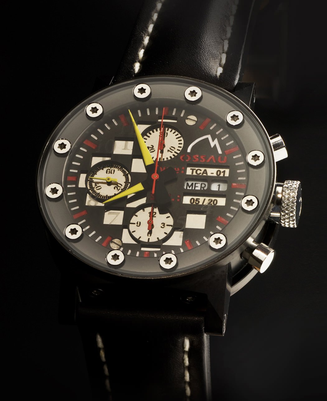 Ossau is a new French brand based in the Pyrenees, where the watches are assembled by hand. The 41mm case of the TCA-01 chronograph is inspired by the technologies of the automobile and aerospace industries, while the reliability of a Swiss made mechanical chronograph calibre with a 42-hour power reserve is preferred for the time and chronograph functions.