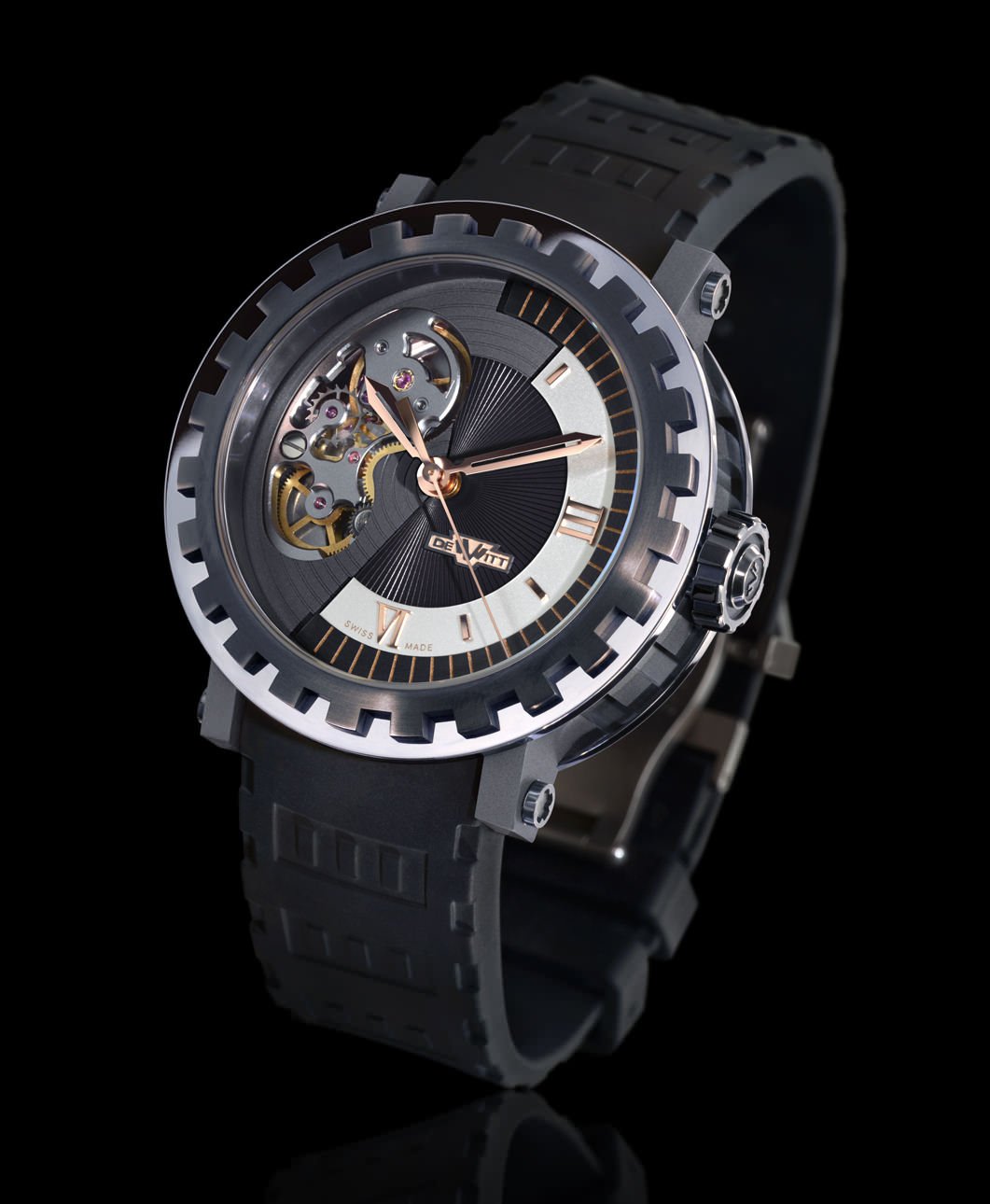 Dial: Black with sun motif at the centre and sunray motif on the rim, open-worked between 7 and 12 o’clock