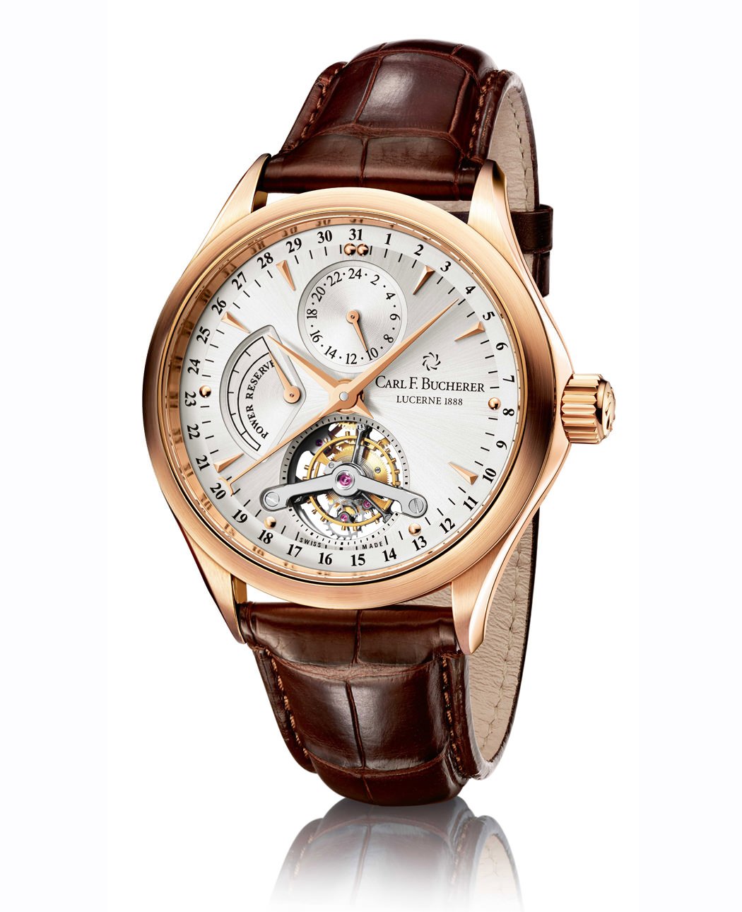 Strap: Hand-stitched Louisiana alligator leather with 18-carat red-gold folding clasp