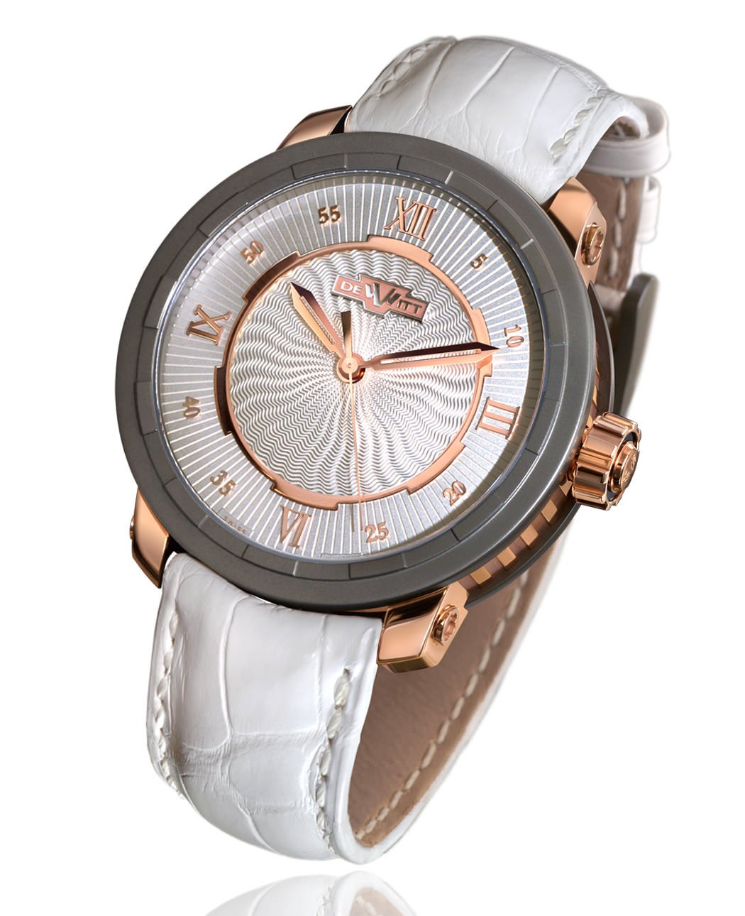 Strap: White alligator with grade 5 Neotitanium pin buckle