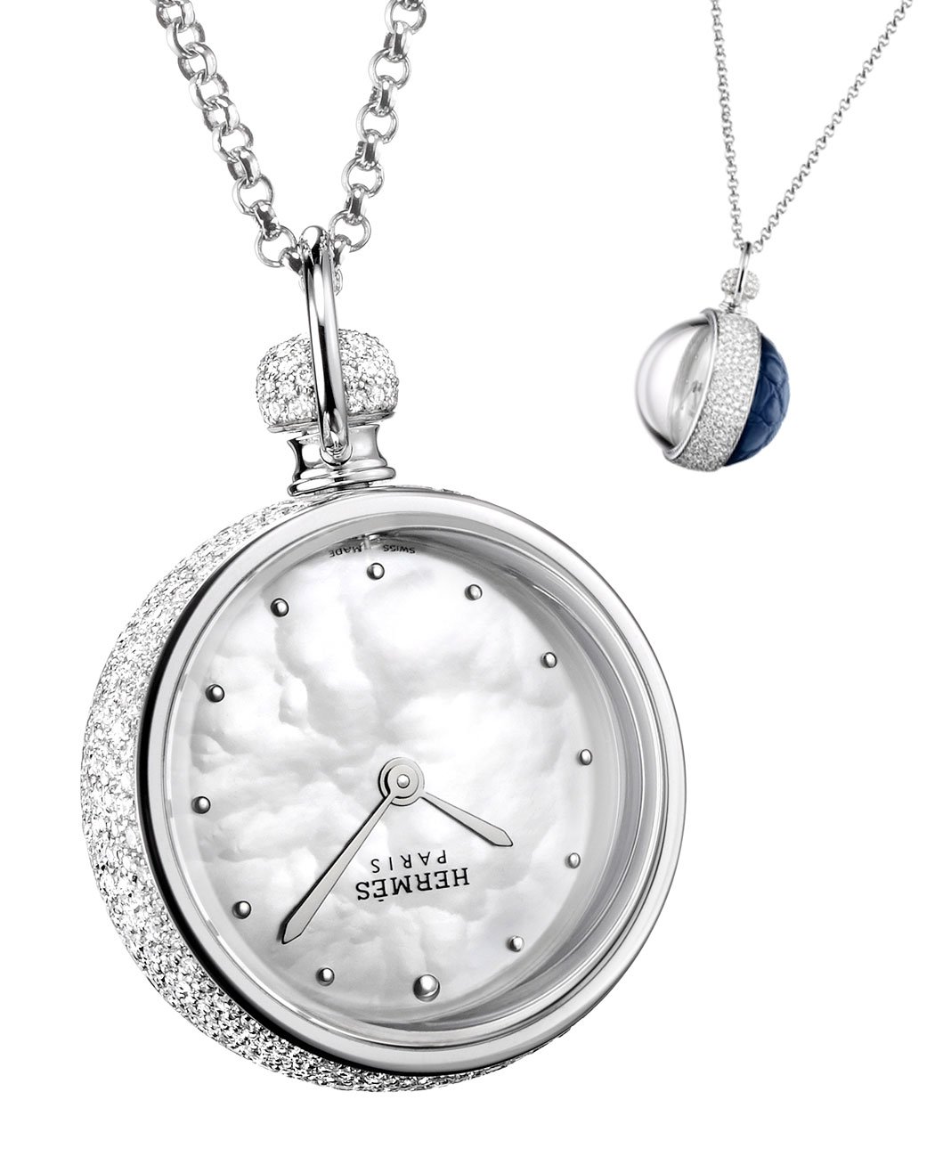 Dial White natural mother-of-pearl, rhodium-plated pearl-shaped hour-markers