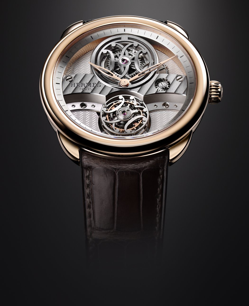 Movement: H1923 manually-wound movement with flying tourbillon, 21,600 vibrations/hour, 90 hours power reserve