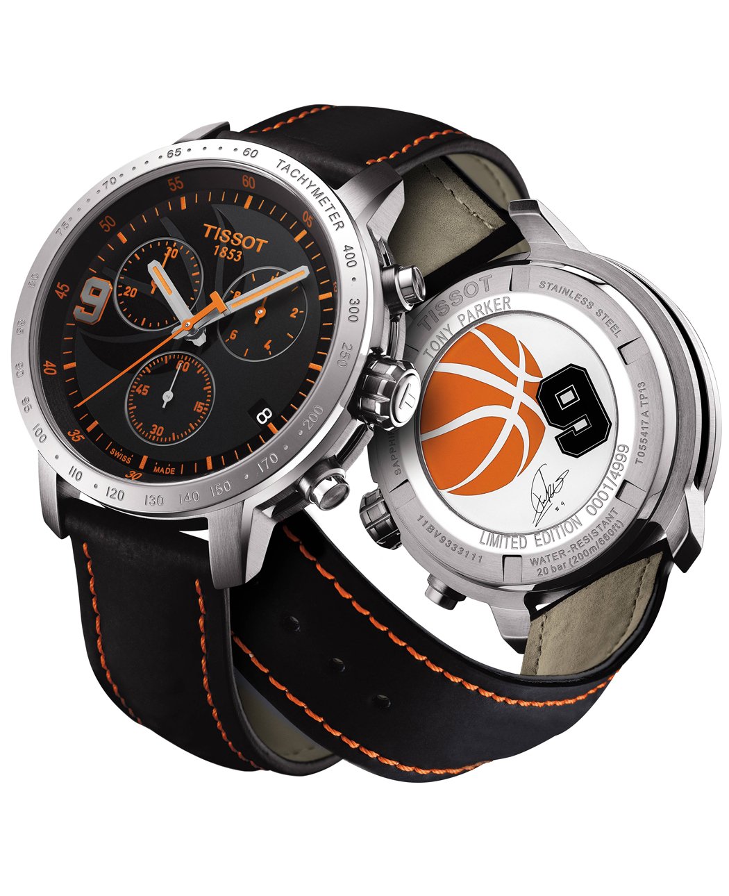 Dial: Black background with basketball motif, orange markings and oversized 9