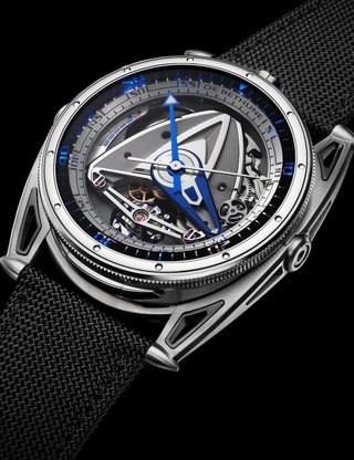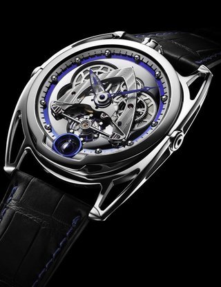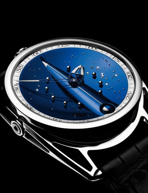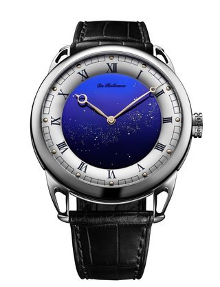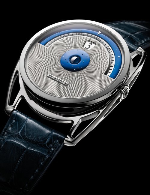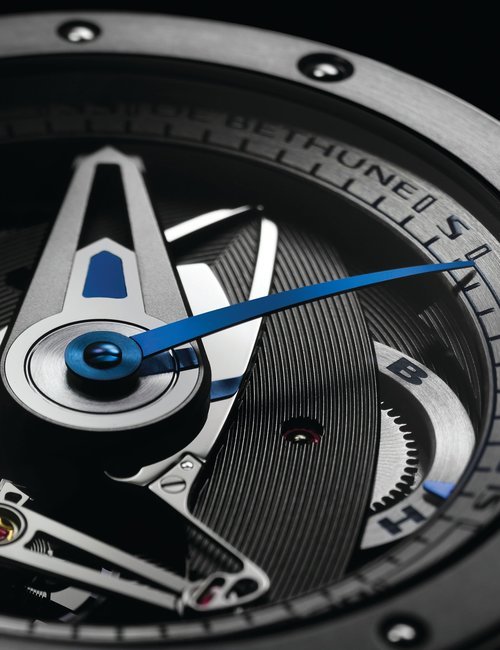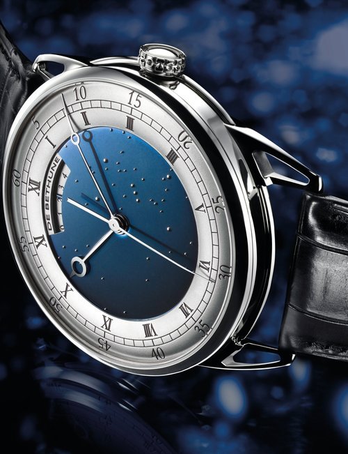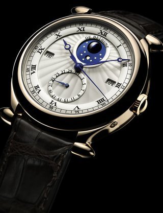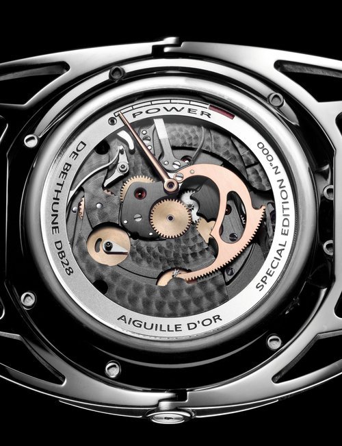 A completely new movement, Calibre DB 2145, was created to free the centre of the dial. The resulting movement uses peripheral hour and minute hands, circling the engraved Zodiac head. New techniques, such as the use of micro ball bearings and a new transmission system capable of driving the revolving discs, were developed specifically for this movement.