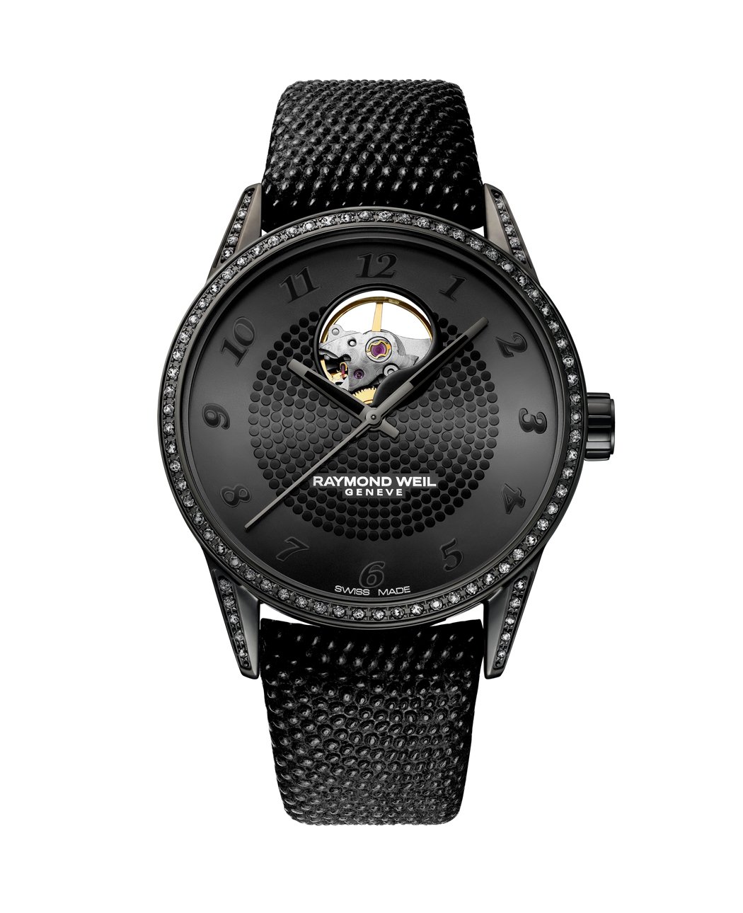 Case: 38mm diameter steel and black PVD set with 86 black diamonds