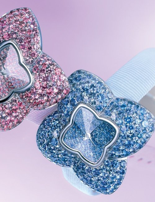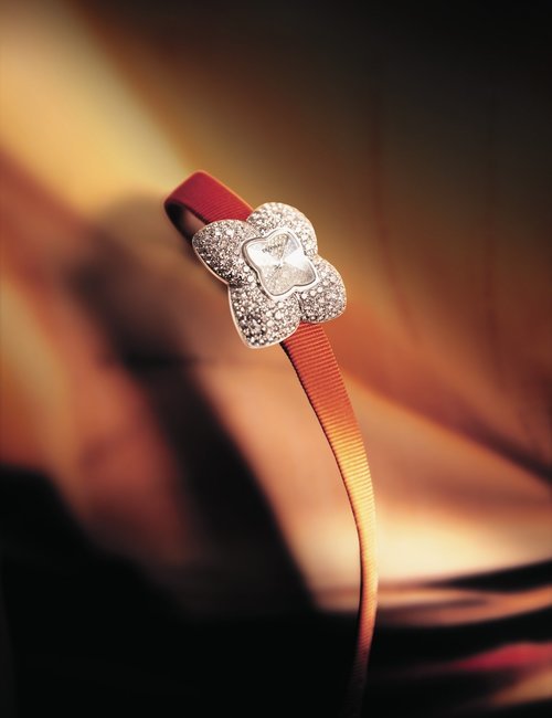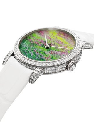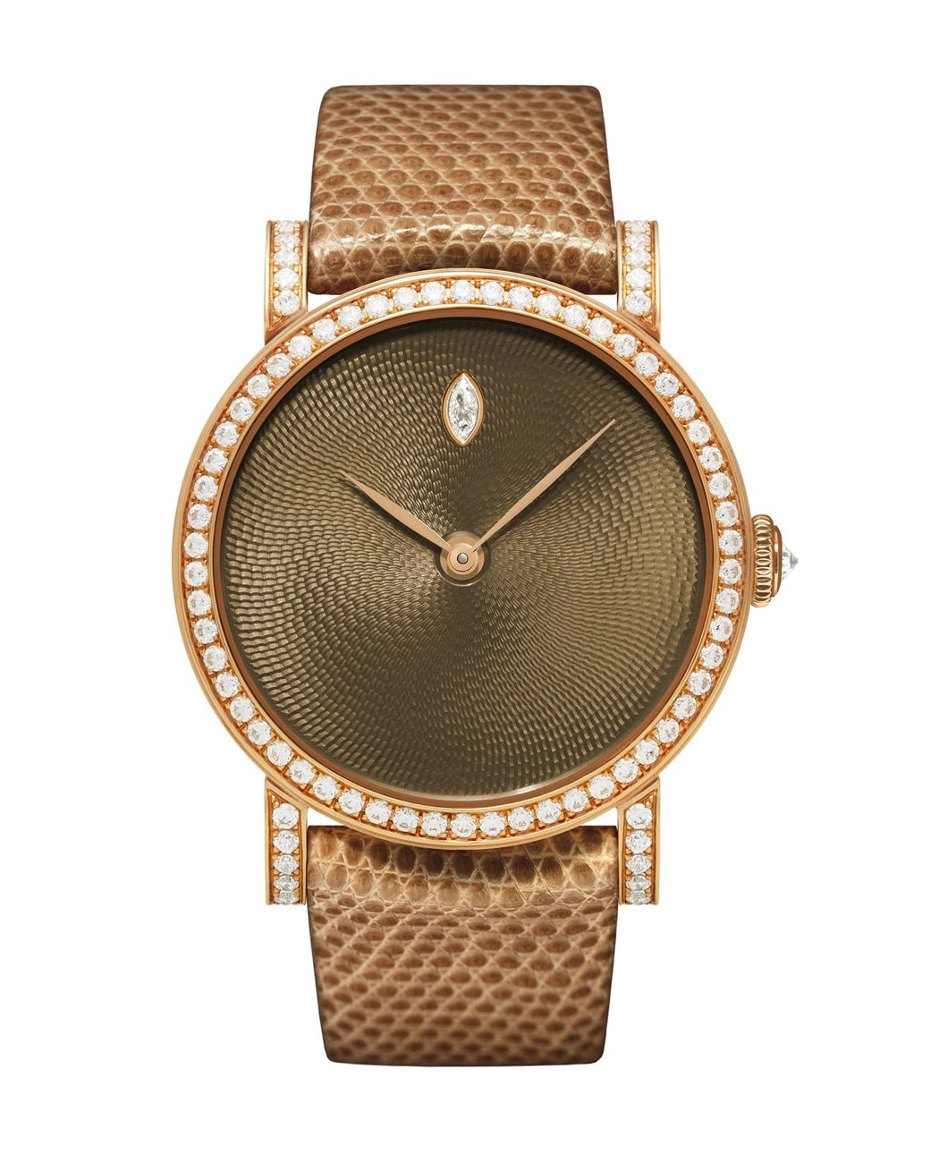 Rondo Translucent Champagne. 36mm red gold case set with 197 diamonds. Crown set with diamond. Guilloché and Translucent Grand Feu enamel dial set with a navette diamond. Automatic movement. Lizard strap with red gold tongue buckle set with 24 diamonds.