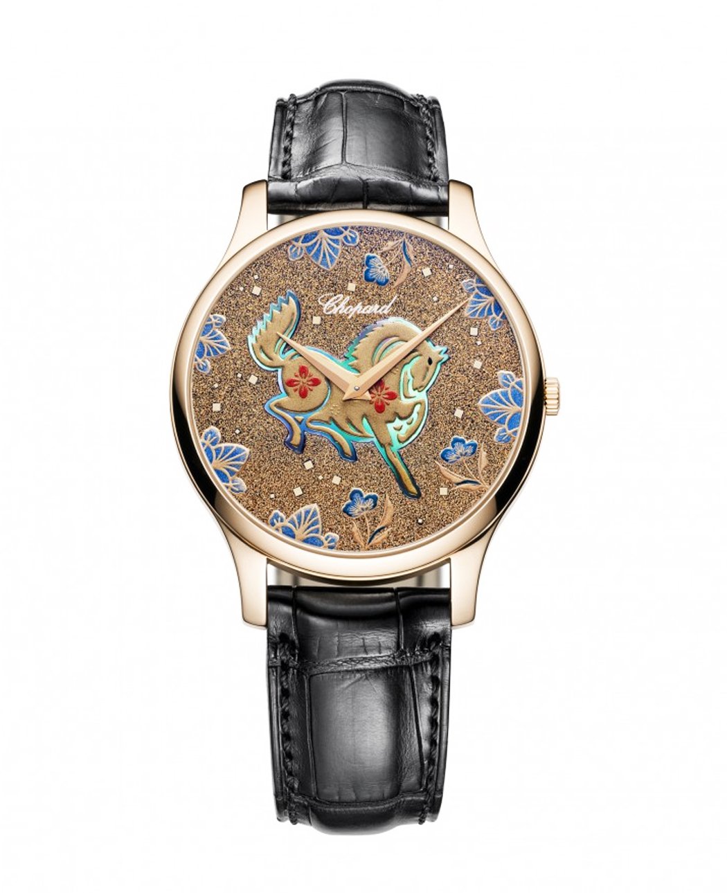 Proclaimed a “Living National Treasure” by the Japanese authorities, artist Kiichiro Masumura has created this unique dial for Chopard based on the time-honoured lacquering techniques of Urushi and Maki-e. Marrying ancestral craftsmanship with the highest degree of Swiss watchmaking, this majestic work of art portrays the Chinese astrological sign of the horse. Magnificently showcased within the understated lines of the ultra-thin L.U.C XP in 18-carat rose gold, this exceptional timepiece is equipped with the mechanical self-winding L.U.C Calibre 96.17-L.