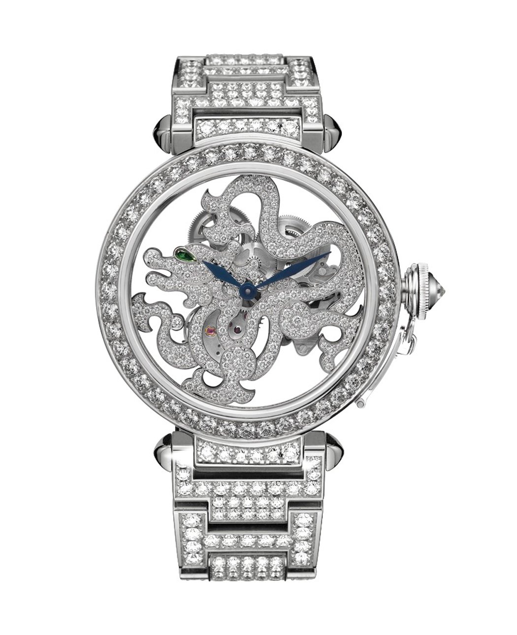 Movement: mechanical Manufacture movement with manual winding, calibre 9617 MC, hours and minutes complication with skeletonised bridges forming the shape of a dragon