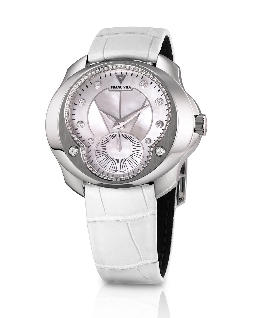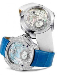 Classic “Royal Blue” with silver-toned hour-markers or “Selenity” white mother-of-pearl with diamond-set hour-markers