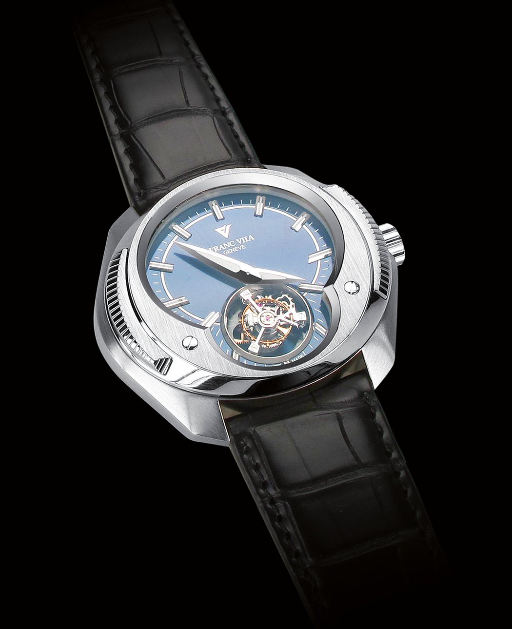 Another innovative feature is that the minute repeater is wound not by the traditional slidepiece, but instead by rotating the bezel. Each timepiece is unique. Mechanical hand-wound FV No.3 calibre, 315 parts, 29 jewels, 21,600 vph, flying tourbillon with minute repeater, up to 90-hour power reserve.