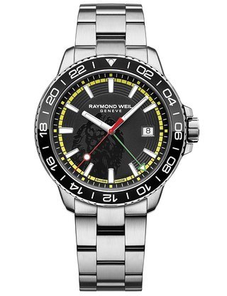 Each timepiece is engraved with a unique number on its movement and comes with a certificate issued by the COSC. The 45mm 18K rose gold case shelters a dial featuring Raymond Weil’s hand-written signature. The chronograph pushbuttons to start, stop, restart and reset the chronometer sit on either side of the crown.