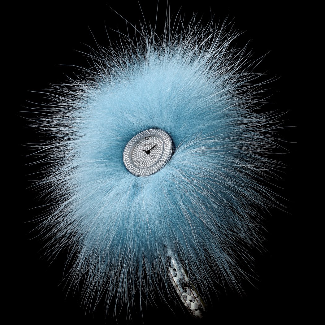 Today’s sophisticated woman can choose to wear the watch that matches her mood: fur-free for daytime or complete with the Glamy in the evening for an authentic style statement. Wildly chic and imbued with the expertise of the Fendi fur ateliers, these four limited series are fitted with an Elaphe snakeskin strap in a colour to match the Glamy. The small-size version of the watch is studded with 421 diamonds (approx. 1.87 ct), while the larger variation sparkles with 667 diamonds (approx. 3.06 ct). Quartz movement.