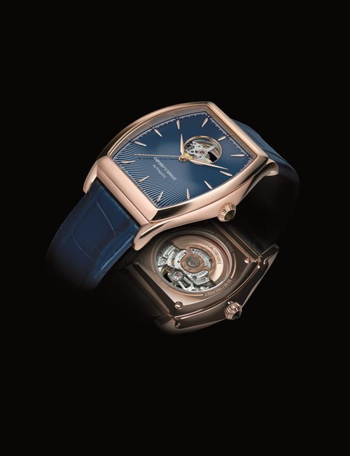 Subtle and refined down to its smallest details, the watch is fitted with a sapphire caseback revealing its mechanical automatic STP1-11 calibre. Pink gold-plated stainless steel, polished finish, 34 mm case.