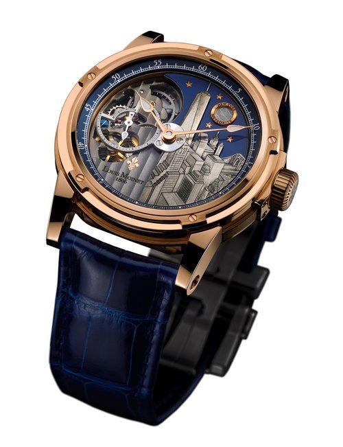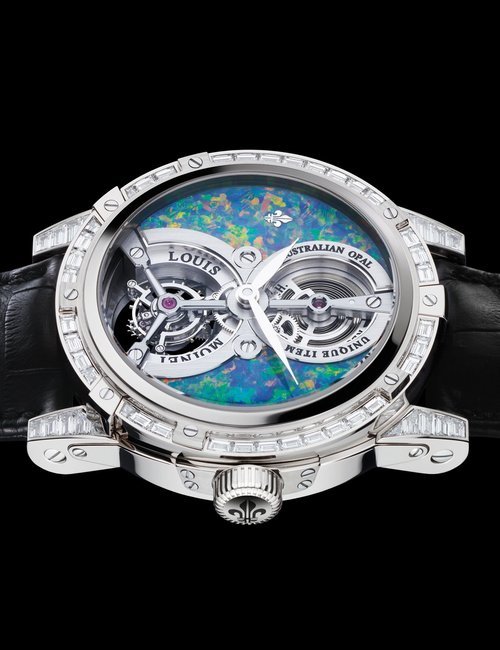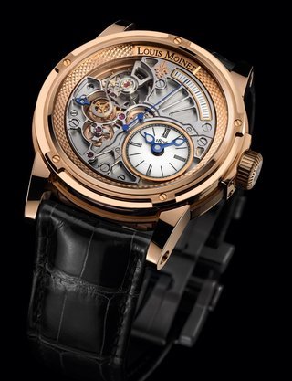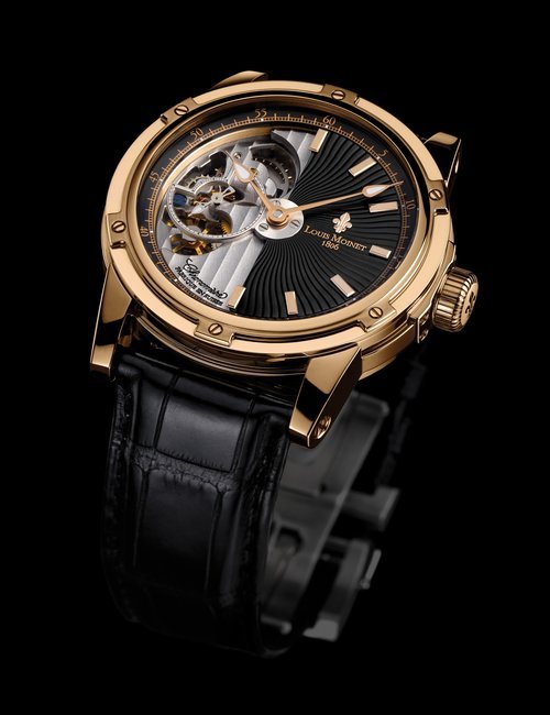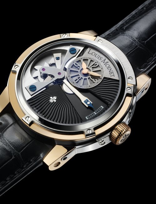Through its rich heritage, Louis Moinet expresses a unique brand identity: the time is indicated by “Gouttes de Rosée” (dewdrop) hands, on a dial adorned with “Côtes du Jura”®.