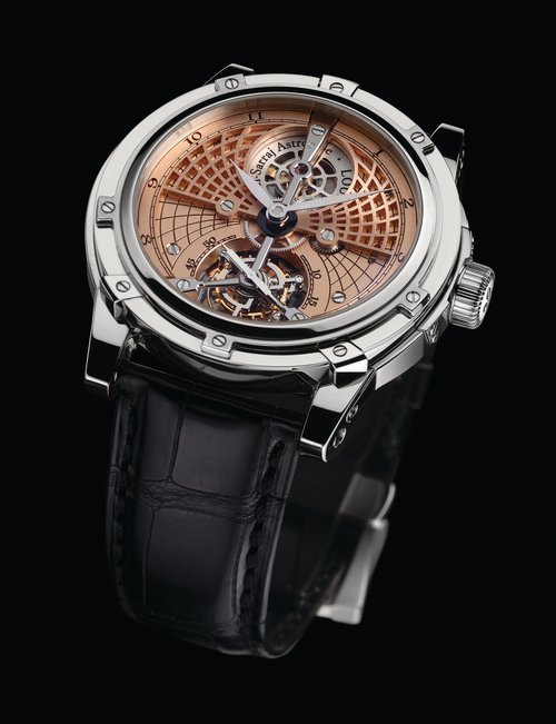 ASTRALIS is an innovative watch unlike any other. Its extremely high level of technical sophistication is highlighted by a legendary mechanism. ASTRALIS features an exclusive and unprecedented alliance of complications: a Tourbillon, a split-second column-wheel Chronograph, as well as a 24-hour Planetarium displaying meteorites boasting unique rarity.