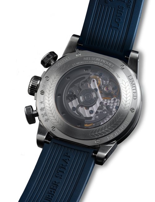 Case-back: Equipped with 7 screws, engraved with individual number and Louis Moinet symbols