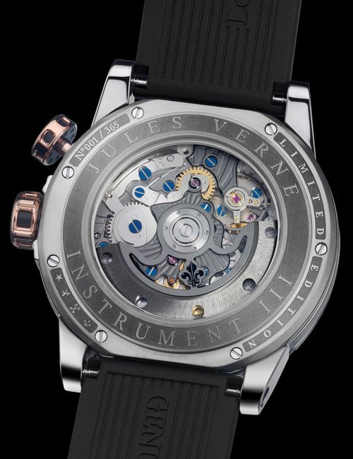 JULES VERNE Instrument III is a single-button chronograph that displays its functions with an original indicator.