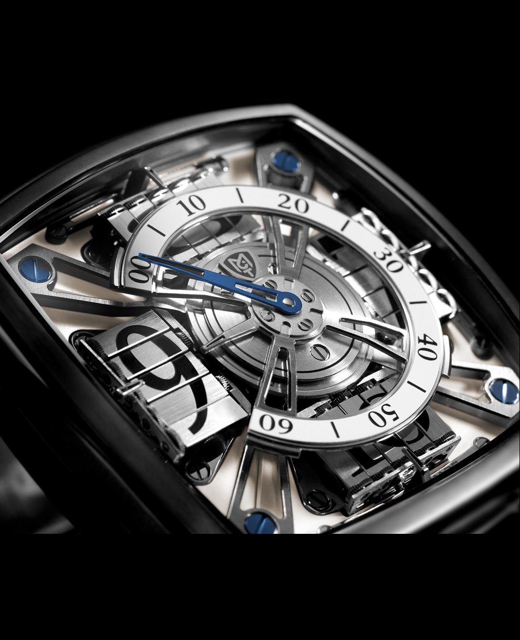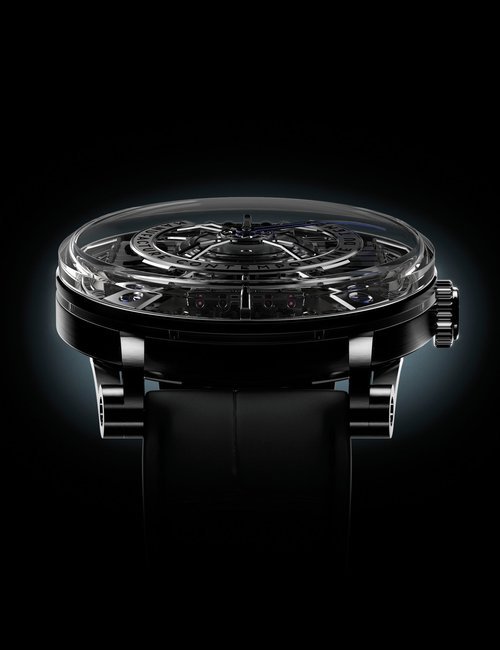 With its sequential hour indication via four modules, each made up of five triangular prisms that rotate to display a large hour numeral, and its minutes displayed on a jumping rotating section, the Sequential S110 EVO gives a new face to the MCT-110 movement with one of the most radical display systems we have seen in recent years.