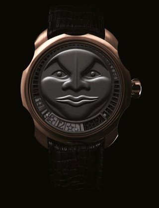 • DLC coated winding mass with 18K gold moon and masses