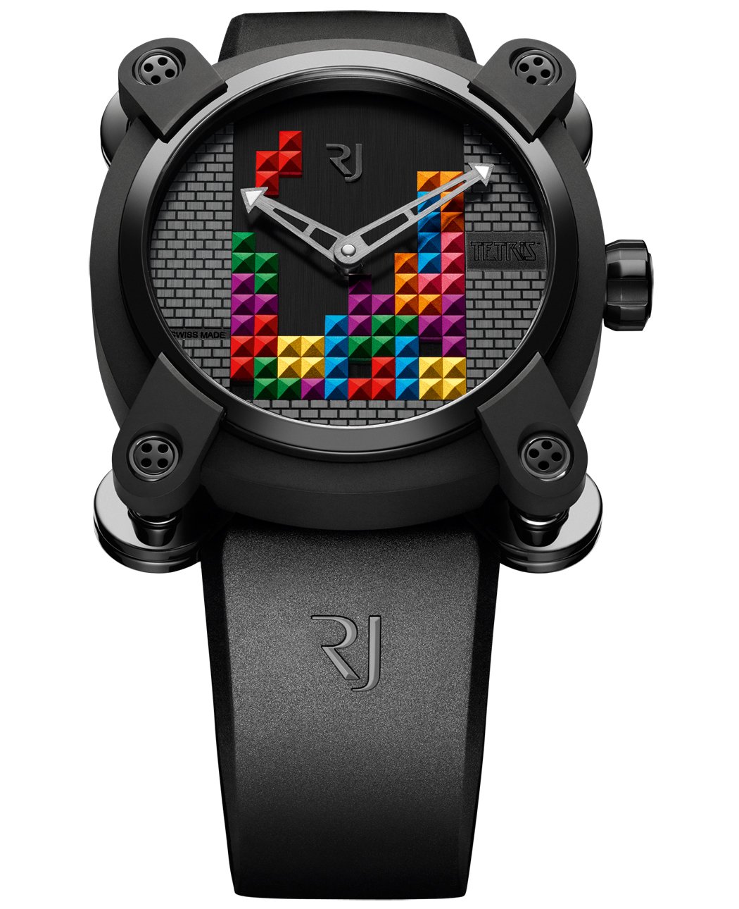 Some of us spent the idle hours of our childhood with a Meccano set (which produced quite a few watchmakers), others with a first-generation Game Boy. Manuel Emch is in the latter category, and he admits, “I played for hours as my addiction grew stronger with time.” Now the boss of Romain Jerome, he pays horological tribute to the iconic game of Tetris. Translated into combinations of four aluminium Clous de Paris (a first), the distinctive tiles known as Tetrominos form a colourful gaming sequence against a dial engraved with ‘bricks’, giving a vintage and industrial look. This visually striking graphic interface is set against a Moon Invader case in black PVD-coated titanium. Limited edition of 84 ‘Lines’, a reference to 1984, when Tetris was created.