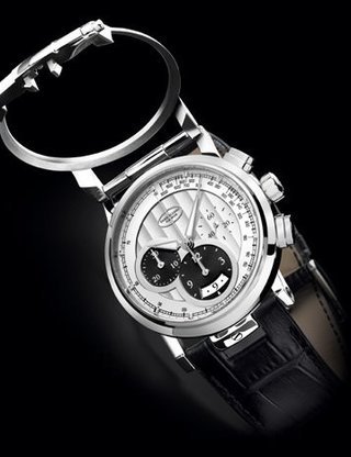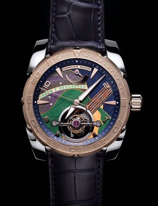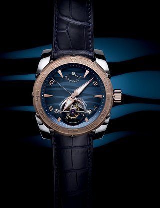 The brand’s signature colour, the delicate and subtle ‘Blue abyss’, can only be created by someone who masters the most exacting parameters: a specialist electroplating bath, perfectly adjusted current and meticulous temperature control. “Under the effect of electrolysis, the colour is transformed: the initial bright orange shade turns into an almost rust-coloured brown; next, purplish tones appear, as deep as the striking colour of aubergines; finally, waves of blue materialise with this blue-violet hue which turns blue... and then a moment later... Blue abyss. Stop. Two or three seconds more in this bath and the piece would have turned to royal blue then grey.” Beating inside the Tonda Métrographe is the automatic manufacture FP 315 chronograph movement with variable-inertia balance and twin series coupled barrels.