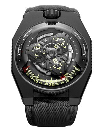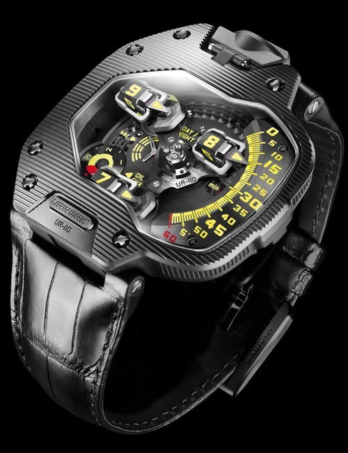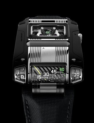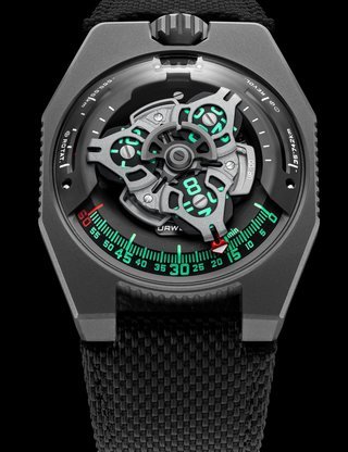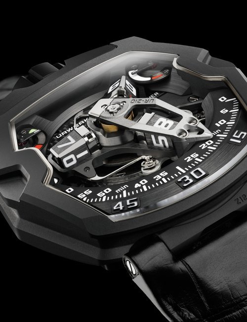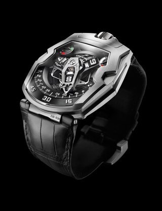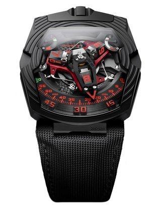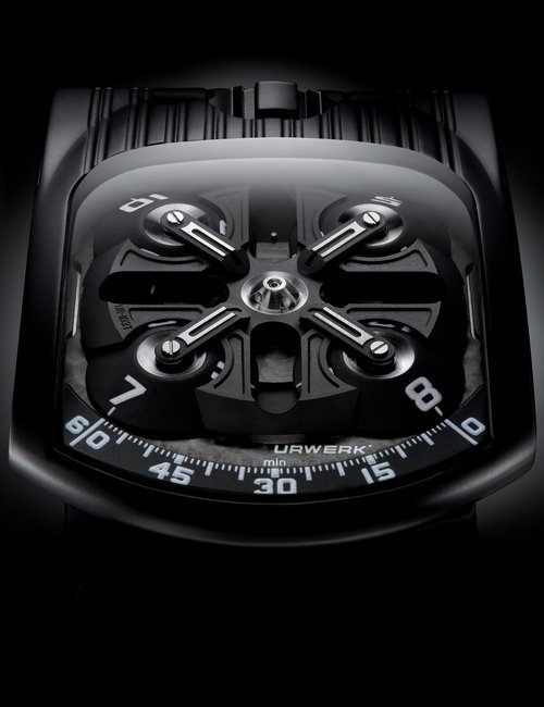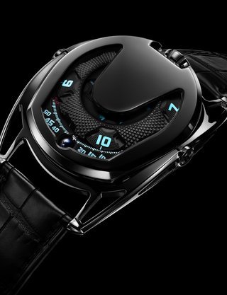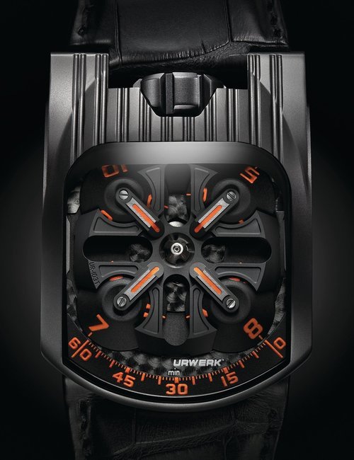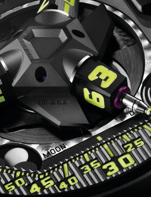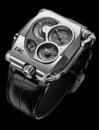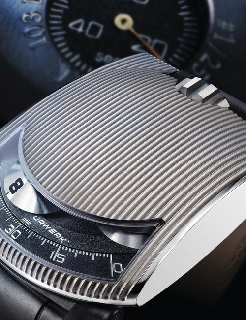 The EMC, the world’s only 100% mechanical watch whose rate can be checked electronically by simply pressing a button, represents the Holy Grail of Urwerk’s timekeeping. Resolutely futuristic in function and display, the new limited edition EMC Pistol nevertheless bears more than a passing resemblance to a gunslinger’s pistol from the Wild West. This impression is fully justified: its intricate engraving is the work of Florian Güllert who, over the past 15 years, has earned an international reputation for his unique skill in transforming rifles and handguns into stunning works of the engraver’s art. Navigating deftly between contrasting genres, the engraved Pistol is nevertheless a genuinely intelligent watch: it features an optical sensor that works with the balance wheel, an electronic oscillator that acts as the reference device, a computer that determines the difference between the rate of the movement and that of the reference oscillator, and a hand-wound generator.