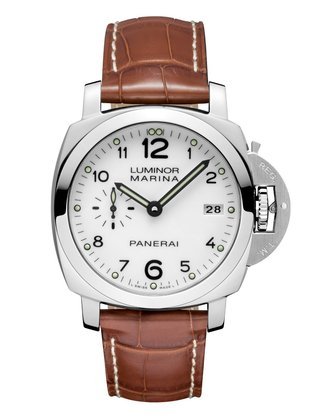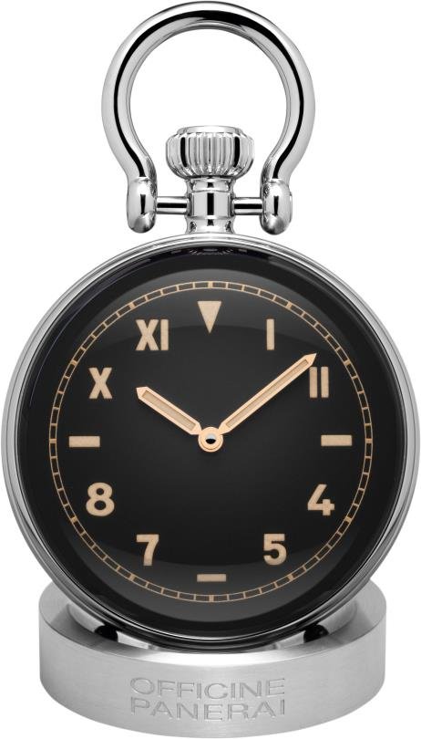 Panerai has earned a reputation not only for its immediately recognisable watch cases, but also for its minimalist luminescent dials. Enclosed in magnifying glass spheres, their graphical power is all the more arresting. Two new versions of this table clock have just been released: the PAM00641, with its mysterious S.L.C. dial which dates back to the 1930s, and which was probably one of the designs developed for the Italian Navy, although it was never adopted; and the PAM00651 with its CALIFORNIA dial which (no help from its name) was developed in 1936 and fitted to the first watches supplied to the Italian Navy. Its unique graphic design boldly juxtaposes Roman and Arabic numerals with index markers, along with a jaunty triangle at 12 o’clock. The spheres conceal a manually wound P5000 calibre with 8-day power reserve.