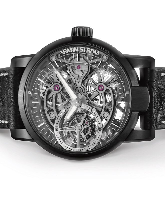 The Tourbillon Skeleton Earth accentuates its structure through extensive skeletonisation of the ATC11-S calibre. This exclusive in-house movement incorporates a tourbillon regulator whose parts are also skeletonised. The prowess lies in this mastery of technique, with a movement that delivers a full 10 days of power reserve, but also in the spectacular sight enclosed within the 43.40-mm black case.