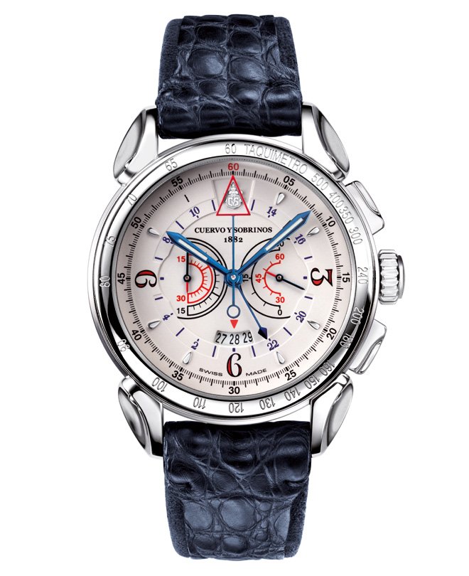 In Havana in 1882, time moved to a different beat. This was a “tiempo lento”, an unhurried time that allowed each moment to be savoured. Cuervo y Sobrinos has transposed this celebration of life into a flight – “vuelo” in Spanish – between past and present. The Swiss watchmaker with the Latin soul is reviving one of its historic models, which it revisits with the elegance and style of today. The case benefits from a highly complex construction. The lugs, meanwhile, are fashioned as separate parts then perfectly adjusted as a continuation of the chronograph pushers. The dial displays information in a carefully orchestrated layout on three levels: small seconds and minute counter on the first level, the 24-hour scale for the second time zone, hour-markers and numerals on the second level, with minutes and seconds on the third level.