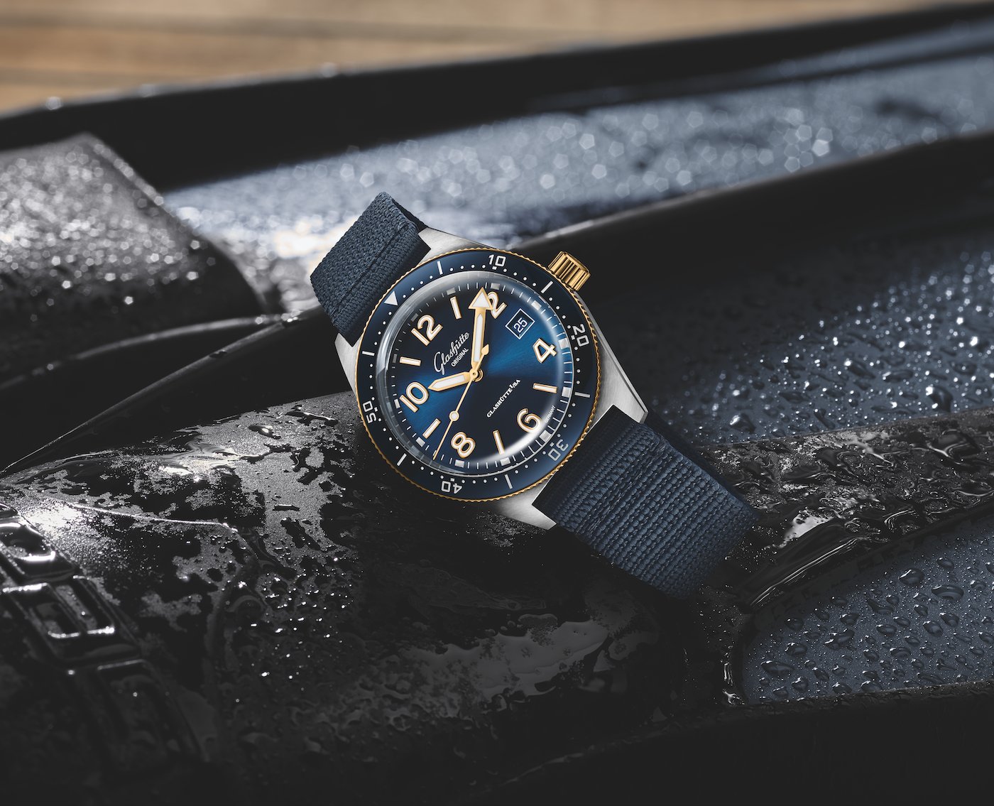 The German brand is expanding its SeaQ diving line with a new two-tone model, inspired by Glashütte Original’s very first diver’s watch, the Spezimatic type RP TS 200 from 1969. Certified by the rigorous DIN 8306 and ISO 6425 tests for professional diving watches, it houses the self-winding manufacture calibre 39-11. Water resistant to 20 bar.