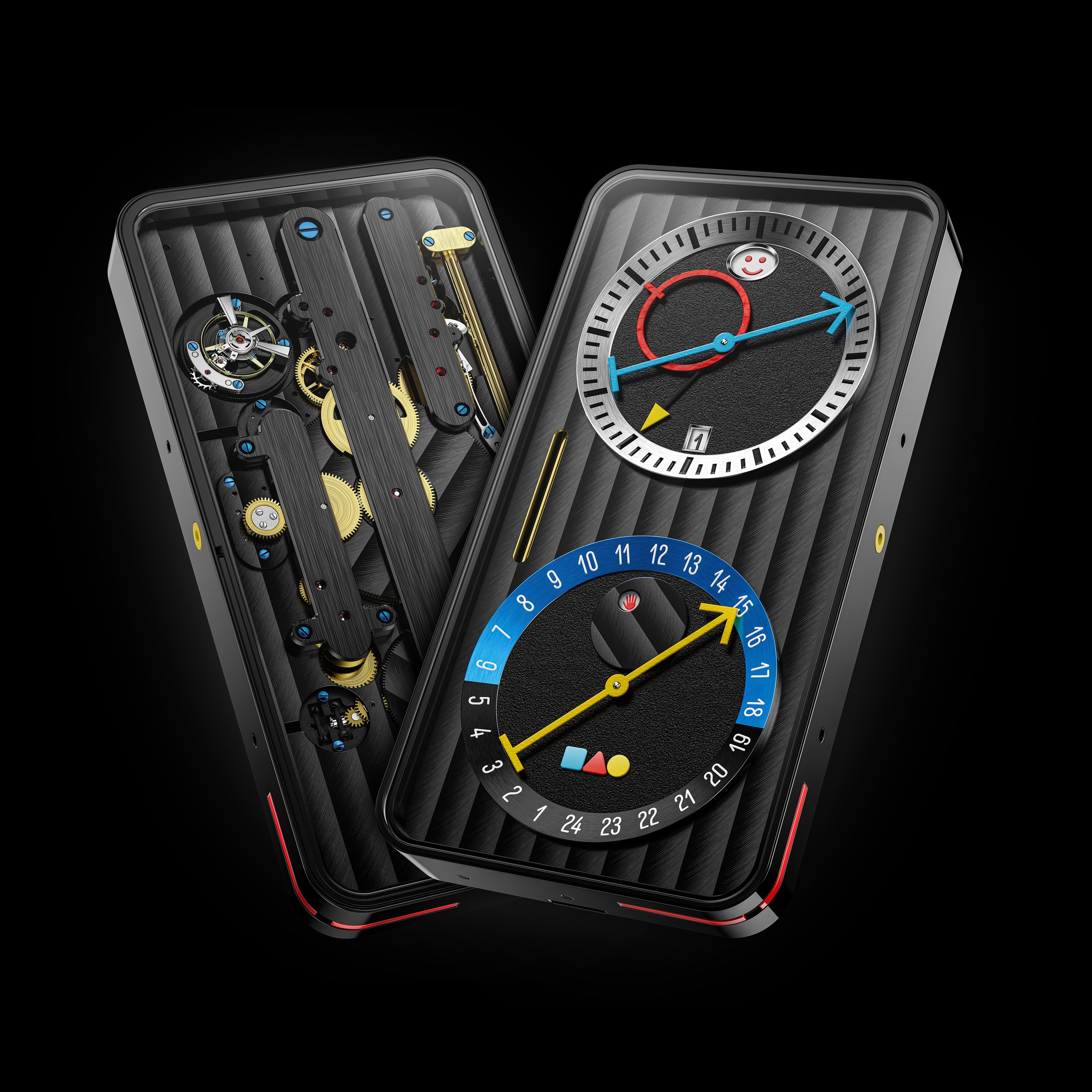 Alain Silberstein – iZman: Is that the new iPhone 23? Nope! While it may have the same shape as an iPhone, there is nothing expendable or electronic about this mechanical marvel equipped with a tourbillon, that will sit neatly on your desk. The legendary French watch designer strikes again with this travel alarm clock, in his trademark yellow, blue and red primary colours. It’s wound old-school style with a red key which, when not in use, fits into a corner of the case. The tourbillon movement with two time zone dials and eight days of power reserve was developed by master watchmaker Olivier Mory.