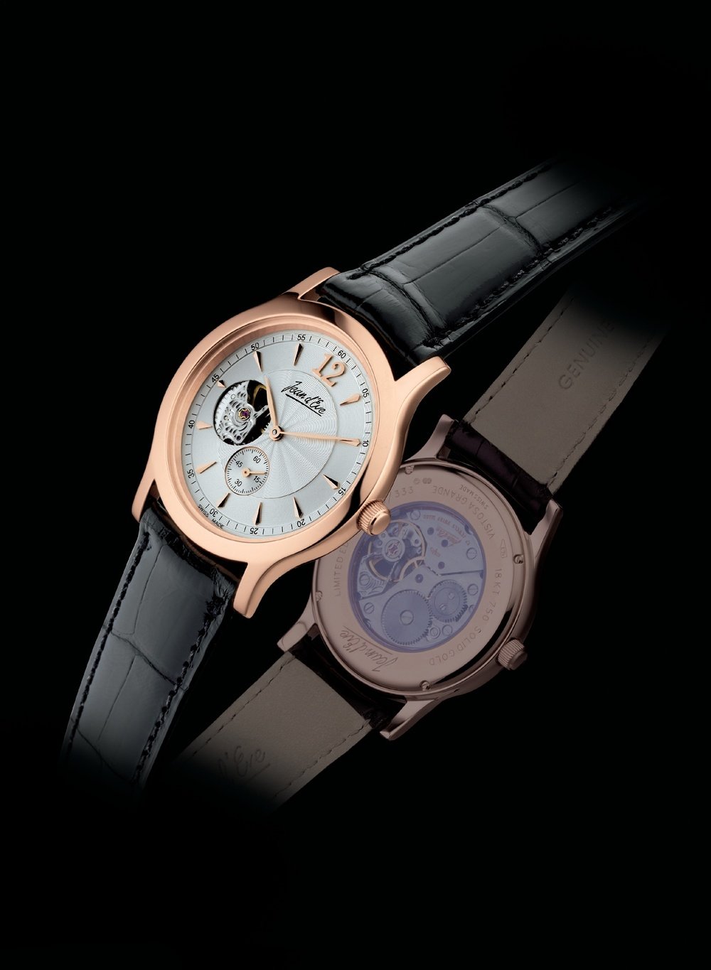 Jean d’Eve has expressed the classical design of the round Vistosa in a limited, individually-numbered edition in 18-carat gold. The mechanical movement, built in the finest Swiss tradition, can be admired through the opening in the dial and the transparent back.