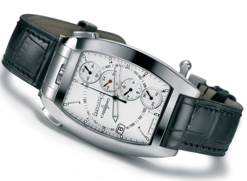 A reinterpretation of the famous Chrono4, this tonneau-shaped model immediately strikes one by its four counters lined up along the right-hand side of the dial. It also features several patented innovations, including a crown protection system which opens by a lever hidden under the case.