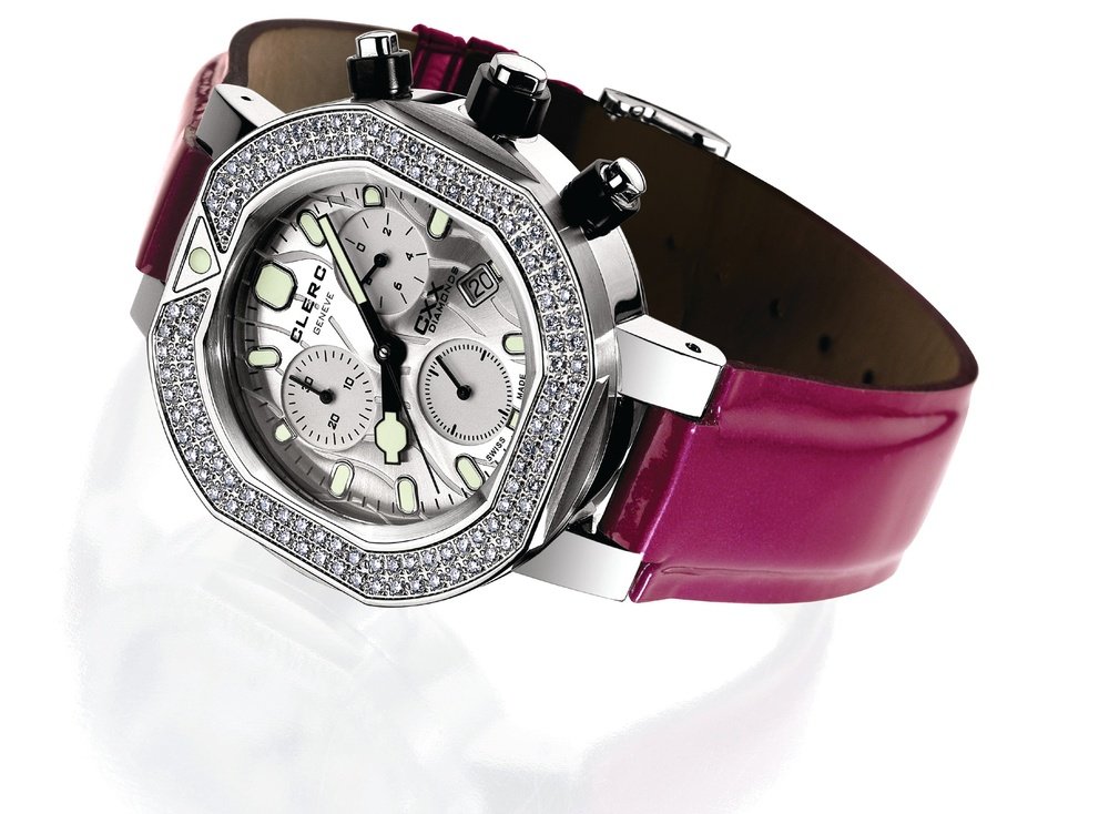 Carved in steel and admirably set with diamonds, this chronograph watch has an extremely contemporary appearance. Feminine and sporty, it will appeal to women who combine a strong personality with impeccable elegance.