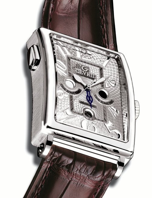 This refined and exclusive new model in the “Avenue of Americas” collection, equipped with dual time-zone and day/night displays, houses a beautiful patented movement with yellow gold rotor. Limited edition of 50 in each precious metal.