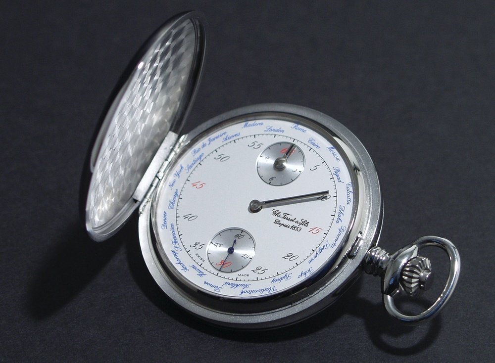 Reference time at 12 o’clock (Geneva - Switzerland), 23 other time zones around the rim.