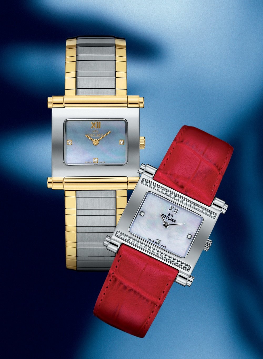 Steel or two-tone, with exclusive wooden chest containing 5 leather straps