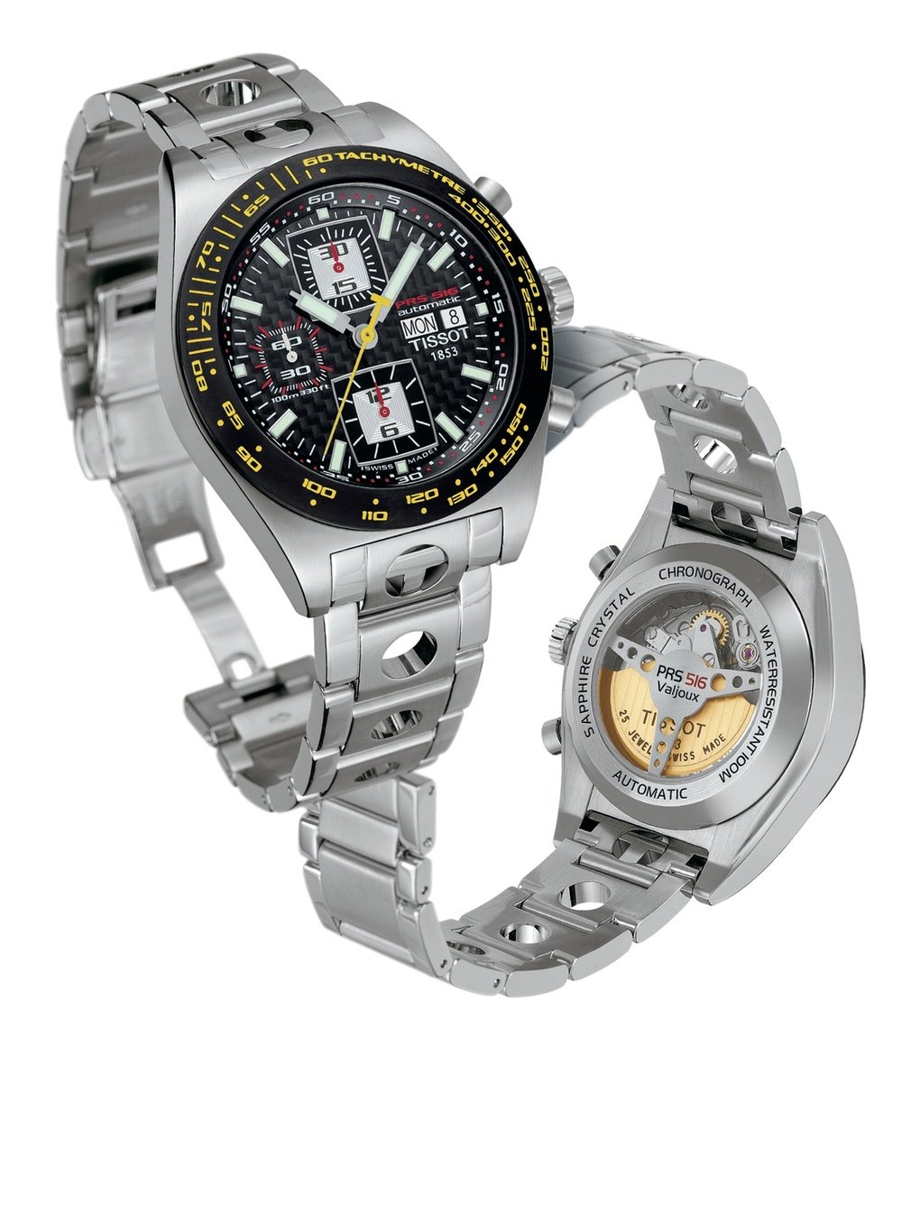 Sporting elegance, high performance: this watch is designed for high-speed enthusiasts. Tissot reinterprets its famous PR516 in a highly contemporary version, equipped with an automatic movement driving many functions. Brushed steel, black PVD and carbon fibre combine to underscore its distinctive character.