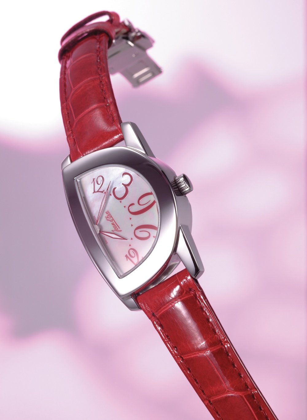 Patented movement with time display over 120° angle (Jean d'Eve exclusive feature)