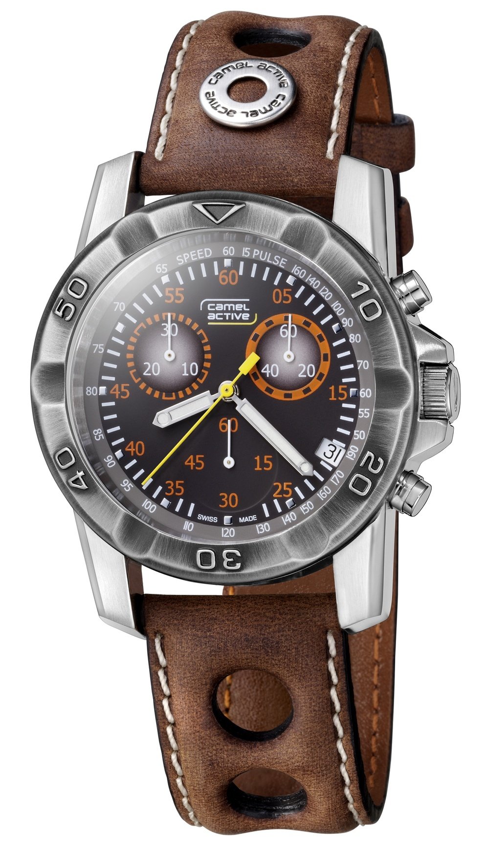 Hours, minutes, seconds, date, chronograph