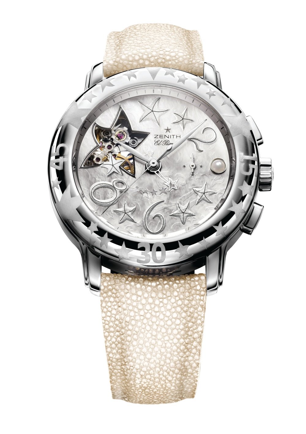 The youngest addition to the Queen of Love collection, the Baby Star Open watch smaller houses the new automatic Elite 68 movement. Accommodated in a design dedicated to love, it can be seen valiantly palpitating, proudly exhibiting its small seconds in the shape of a heart. Round like feminine curves, the Baby Star Open puts forward a new interpretation of the crazy score of passion, on a detachable high-impact bracelet. Talk about love…