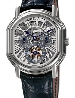 This remarkable complication, a precious re-edition of a creation presented in 2003, reveals the intricacies of the brand’s considerable know-how. Thanks to technical developments, the calendar functions are user-friendly, accurate and highly legible. The particularly attractive skeleton dial, with its elegant and beautifully arranged counters, testifies the aesthetic refinement inherent to Daniel Roth creations.