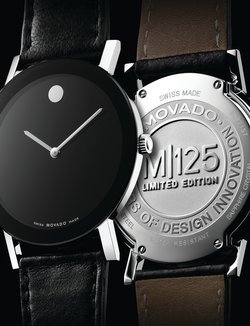 The updated Sapphire watch features a dark, metallic flat sapphire crystal secured to the edge of the case and covering the legendary Museum dial. The flat cabochon at 12 o’clock, which stands out against the shiny black dial free of any hour-markers, symbolises the sun at its zenith and is in harmony with a minimalist approach guaranteeing maximum effect. For the brand’s 125th anniversary, representing art and innovation in the watch design industry, Movado presents its official M125 logo on the back.