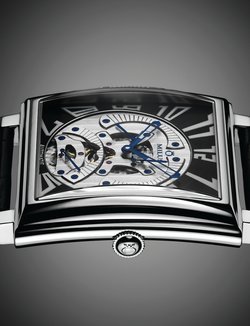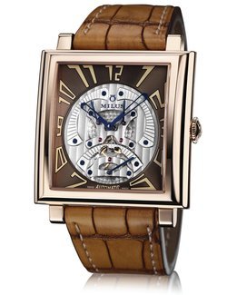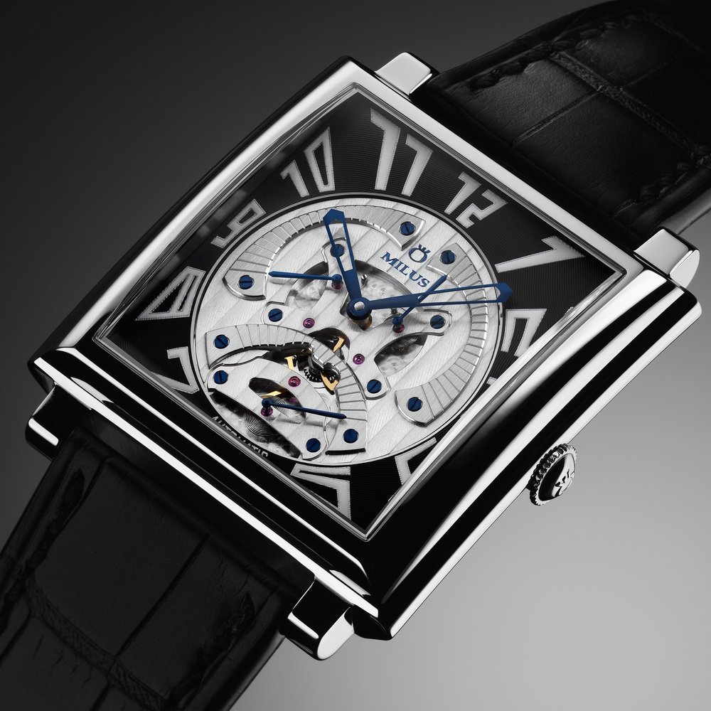 This new Milus creation introduces a very original complication: a triretrograde seconds display. Each of the three seconds hands moves over a 20-second sector before jumping back to its point of departure as the following hand takes over. This fascinating ballet of hands is highlighted by a modern and refined design. The exclusive mechanism reveals its secrets through the open-worked centre of the dial and the transparent caseback.