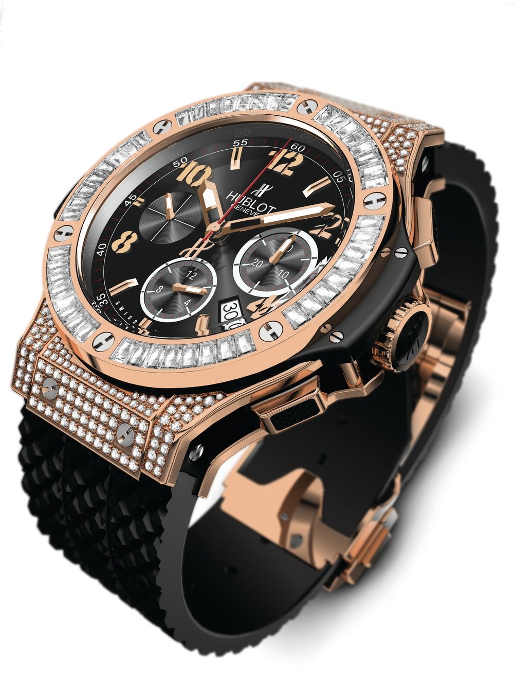 18K red gold bezel set with 48 white baguette-cut diamonds (2.80 cts)