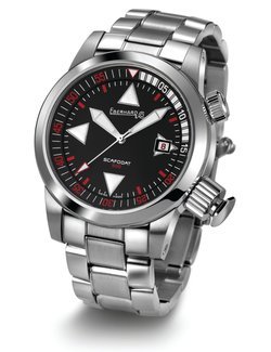 Scafodat embodies Eberhard & Co’s cutting-edge expertise in the field of high-performance technical sports watches. An example of meticulous construction and a choice of the very best materials, this extremely reliable instrument is water-resistant to 500 metres. Other important details which make the Scafodat an exceptional diver’s watch include a highly legible dial, a sexagesimal scale, an automatic security valve, and an exclusive bracelet.