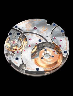 Following more than two years’ research and development work, Universal Genève presents its new Microtor UG 100 calibre which has an automatic winding mechanism with an eccentric micro-weight. This anniversary model, which has drawn its inspiration from the mythical UG 66 calibre produced in 1966, is a COSC-certified chronometer. Both sober and spectacular, this timepiece marks the grand return of the Universal Genève movements. A limited, numbered series of 100 pieces.