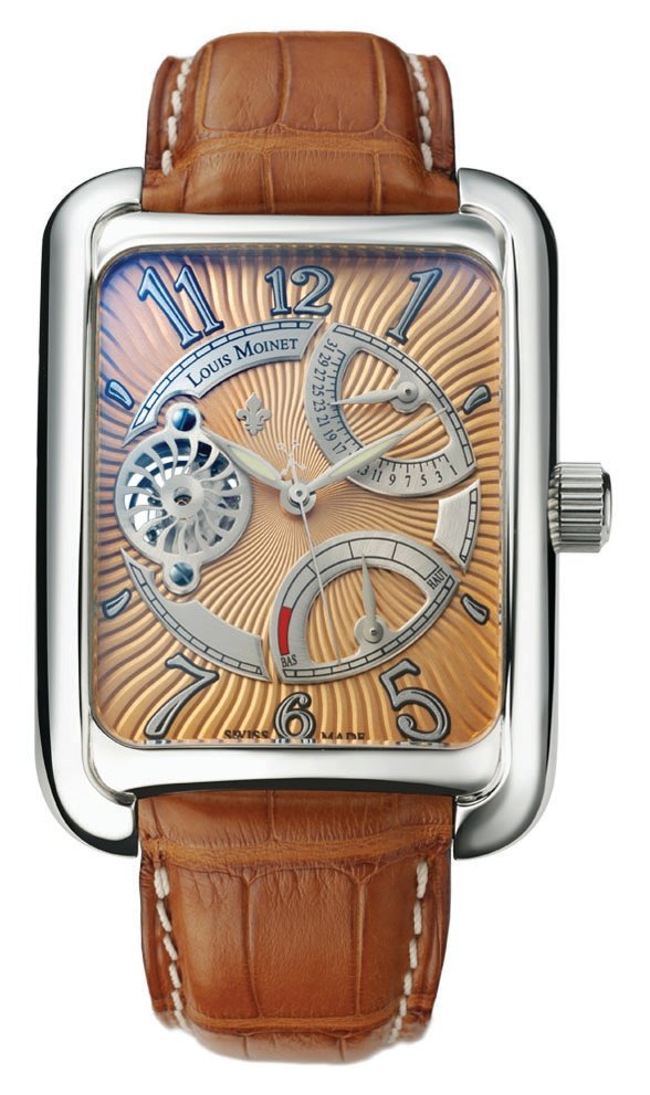 This perfect piece of workmanship draws on the French-style luxury and fine watchmaking associated with the Louis Moinet brand. Born in Bourges, in 1768, Louis Moinet worked for a long time with Abraham-Louis Breguet and also published a reference book. 150 years later, a timepiece based on his drawings of double-barrel watches has given birth to a timepiece bridging the past and present. Its perfect form, astonishing sunray decorations and view through the back of the movement with its 120-hour power reserve make this a timepiece that any connoisseur would want to wear.